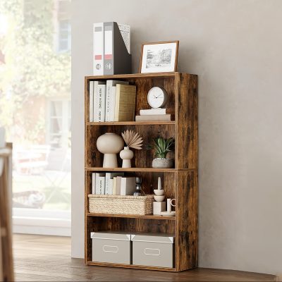 رف تخزين AnneFish، رف كتب 4 طوابق مفتوح لغرفة المعيشة أو المكتب أو غرفة الطعام، مقاس 62*24*121 سم