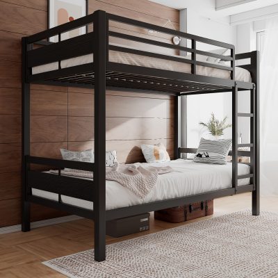 إطار سرير معدني ثقيل من يانارا - سرير مزدوج مطور مع سلم وحاجز كامل الطول