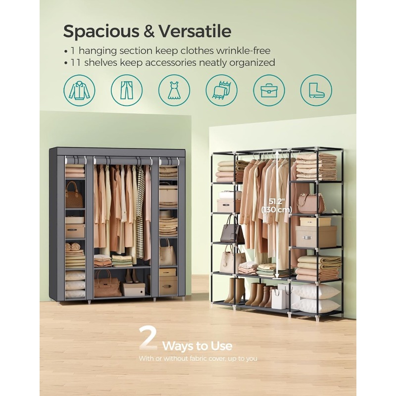 Be the first to review “خزانة ملابس نقالة ثقيلة التحمل من Song Mix مع 12 رفًا وعصا للتعليق”