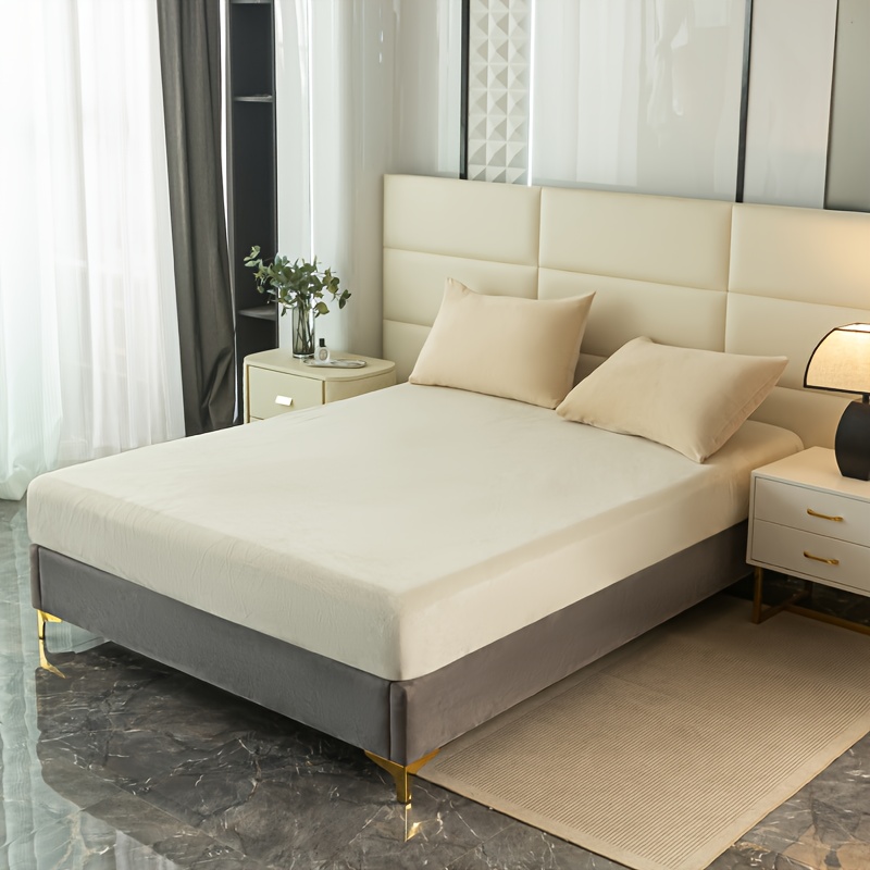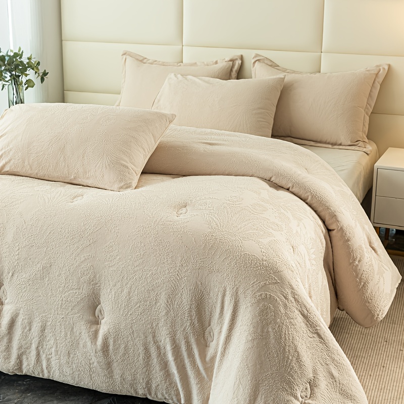 طقم أغطية سرير مريح وأنيق، قماش ثقيل بلون بيج فاتح صديق للبشرة، ألوان أنيقة مع حرفية متفوقة