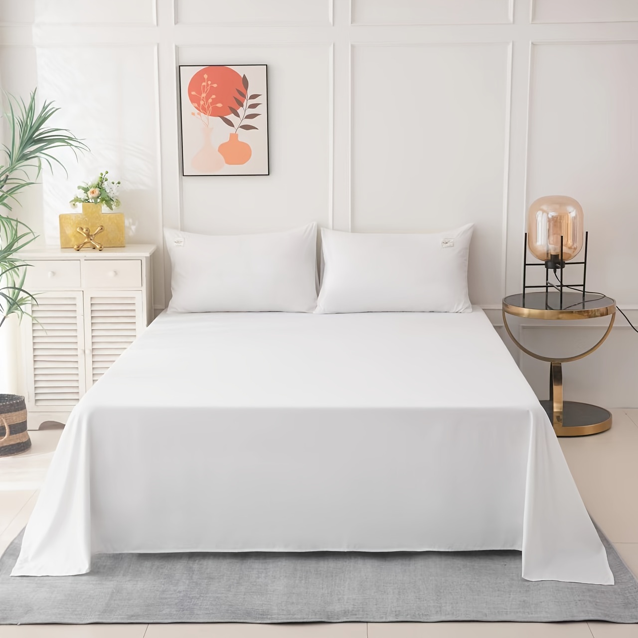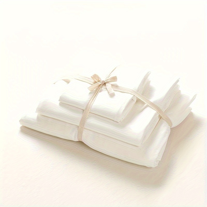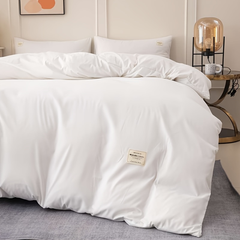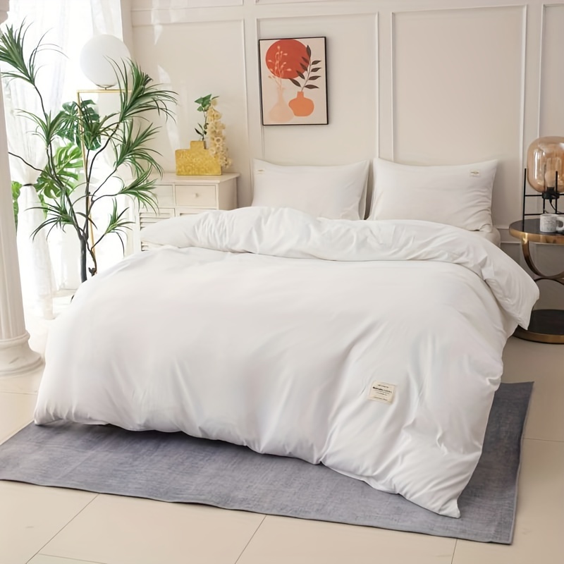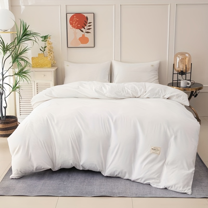مجموعة بياضات سرير ودية للبشرة تحتوي على 4 قطع عالية الوزن بألوان صلبة مع تسمية بيضاء تتضمن غطاء لحاف وشرشف و2 وسادة (باستثناء حشوة اللحاف والوسائد)
