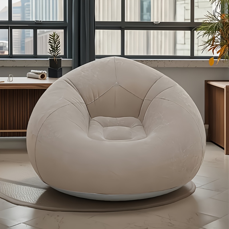 1 قطعة كرسي أريكة بيضاوي قابل للنفخ – رمادي PVC مع مسند ظهر ومساند للأذرع